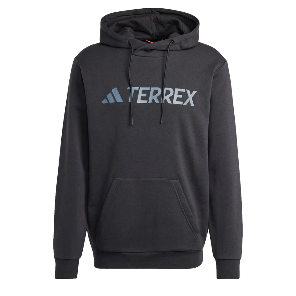 Adidas Terrex Multi Large Logo Hoodie in Black. The soft cotton fleece is brushed inside for extra warmth during cool-weather adventures and evenings around the campfire. Ribbed cuffs and hem seal out the chill.