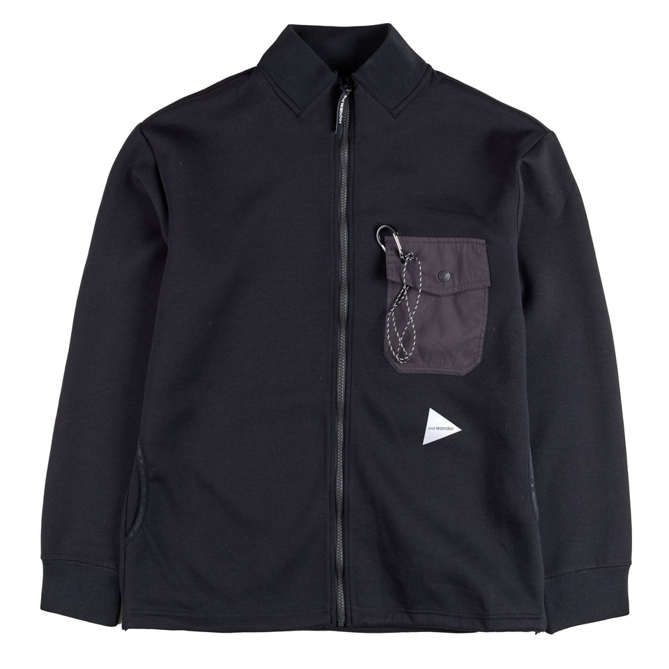 The And Wander Airly Warm Full Zip Fleece in Black is a lightweight mid-layer made from a soft polyester-rayon blend. It features a regular fit, stand collar, full zip front, and ribbed cuffs for comfort and functionality. A snap chest pocket with a carabiner clip adds extra utility, making it perfect for layering both in the city and outdoors.