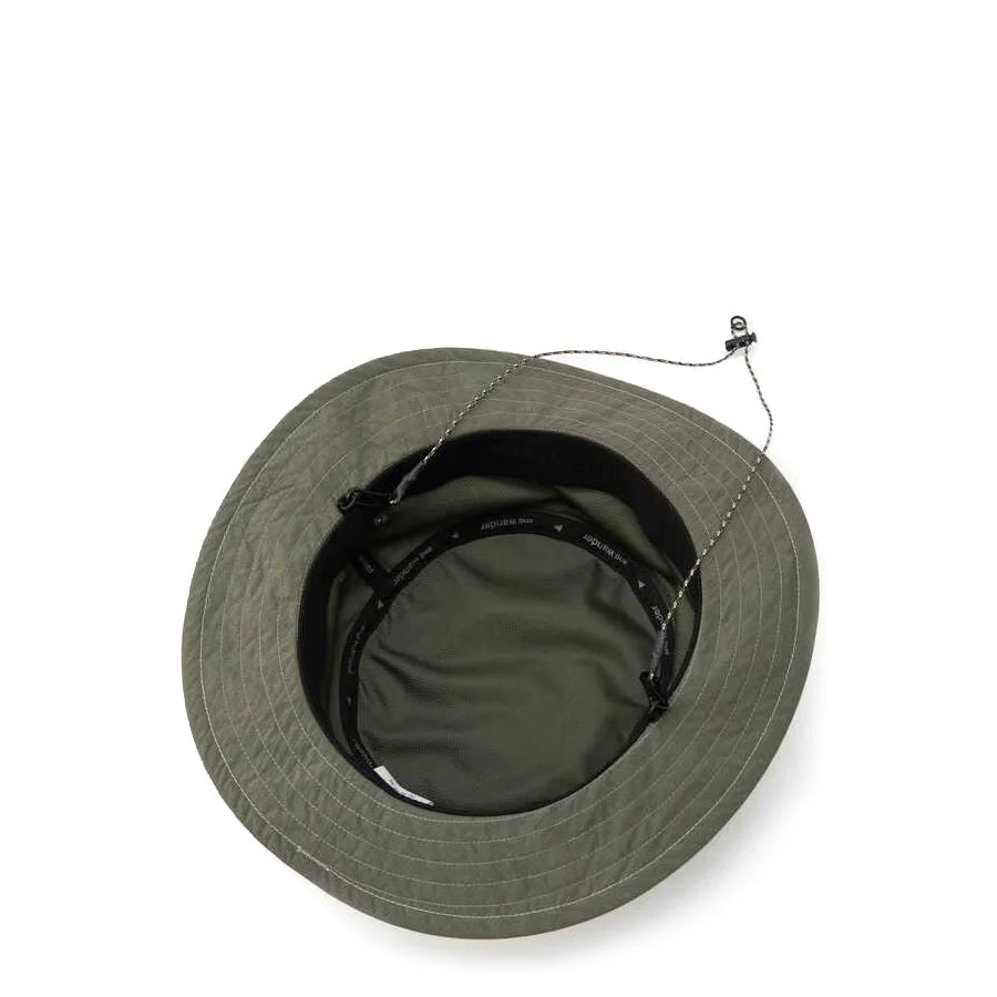 The And Wander Jq Tape Hat is crafted with sustainable materials that are used for the outer fabric, such as using recycled nylon with salt shrinkage to create a unique wrinkle feeling, and finishing with C-ZERO water repellent that does not contain fluorine compounds. INVISTA's COOLMAX mesh material is used for the lining, which has a quick-drying function. Reflector stitch is used throughout.
