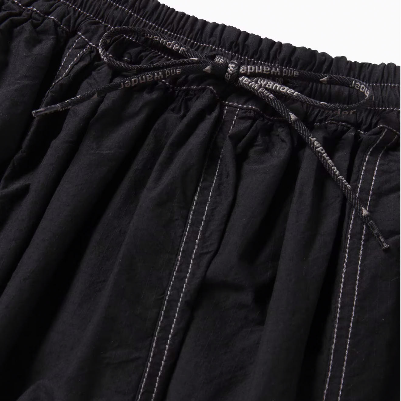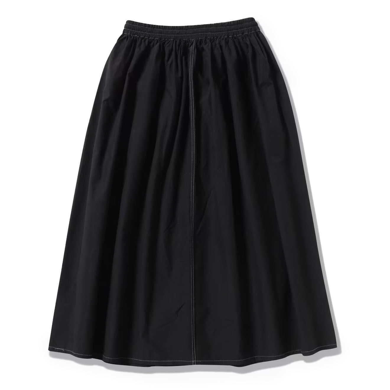 The And Wander Women's C/N Rip Skirt in Black is made from a robust rip-stop fabric that combines organic cotton for the warp and durable CORDURA nylon for the weft. This blend ensures both comfort and durability. The skirt is crafted with thick No. 8 thread, which creates a unique puckered appearance along the seams, adding a distinctive texture and look.