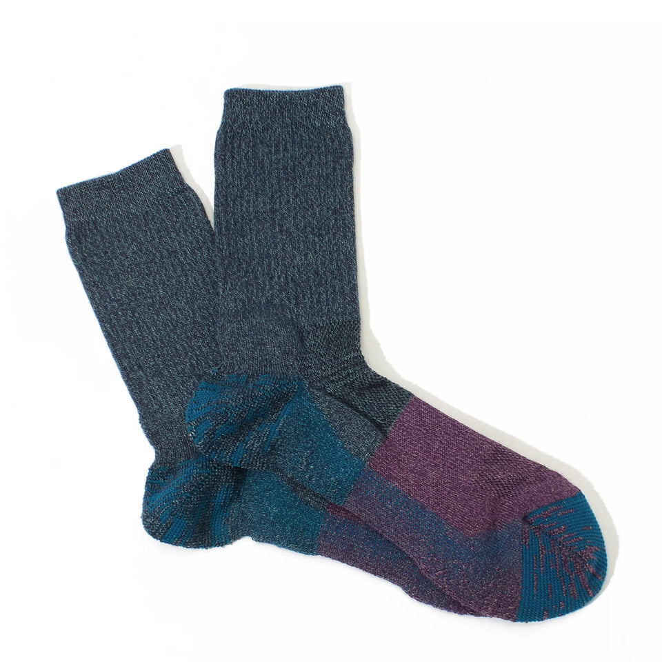 The Anonymous Ism MOC Pile Half Navy Melange brings sport-inspired function to classic Japanese craftsmanship. Designed for all-day comfort, it features soft pile cushioning on the sole and supportive compression at the heel, ankle, and arch. Reinforced with nylon from heel to toe, this half-length style delivers lasting durability and a secure fit for everyday wear.