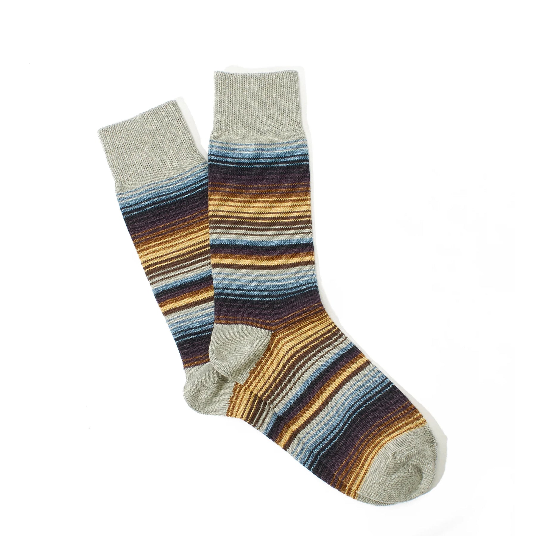 The Anonymous Ism Sarape Stripes Crew Blue Grey socks bring bold pattern knitting and everyday comfort to your rotation. Made in Japan with a premium blend of cotton, acrylic, polyester, and spandex, they offer a medium volume feel with just the right amount of stretch. The 11.5-inch crew length delivers classic coverage, while the vibrant sarape-inspired stripes add standout style to any outfit.
