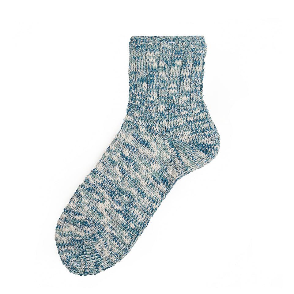 The Anonymous Ism Slub Q Ink Blue socks offer a bold yet minimal aesthetic, crafted from thick slub yarn for a rich texture and supreme softness. Made in Japan, these quarter-length socks are knitted at the edge of the machine’s limits, combining varied yarn thicknesses for a plush, voluminous feel. With their subtle design and exceptional quality, they’re the perfect choice for everyday wear, adding just the right amount of character to your sock collection.