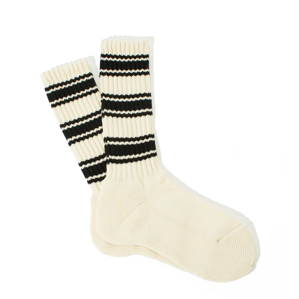 The Anonymous Ism Stripes Pile Crew White socks combine durability and all-day comfort in a classic crew fit. Made in Japan from breathable mercerized cotton, they feature a thick low-gauge knit and a cushioned pile sole for soft, supportive wear. Timeless stripes add a refined, athletic edge to any look.