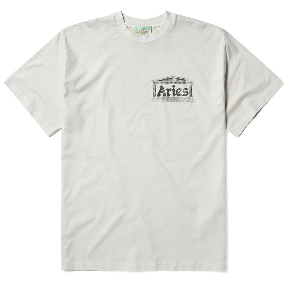 The Aries Aged Ancient Temple SS Tee in Off White is a relaxed, unisex tee with a vintage wash and a screen-printed Aged Temple graphic on the chest. It has a mid-weight and short sleeve design for a washed out, faded effect.