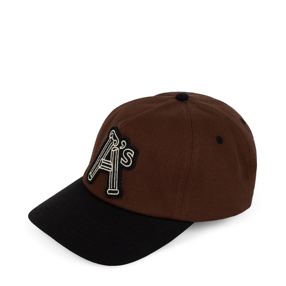 The relaxed Aries Column A Cap in Brown is a baseball cap featuring a Column A logo patch and contrasting brim. Easily adjustable in the back.