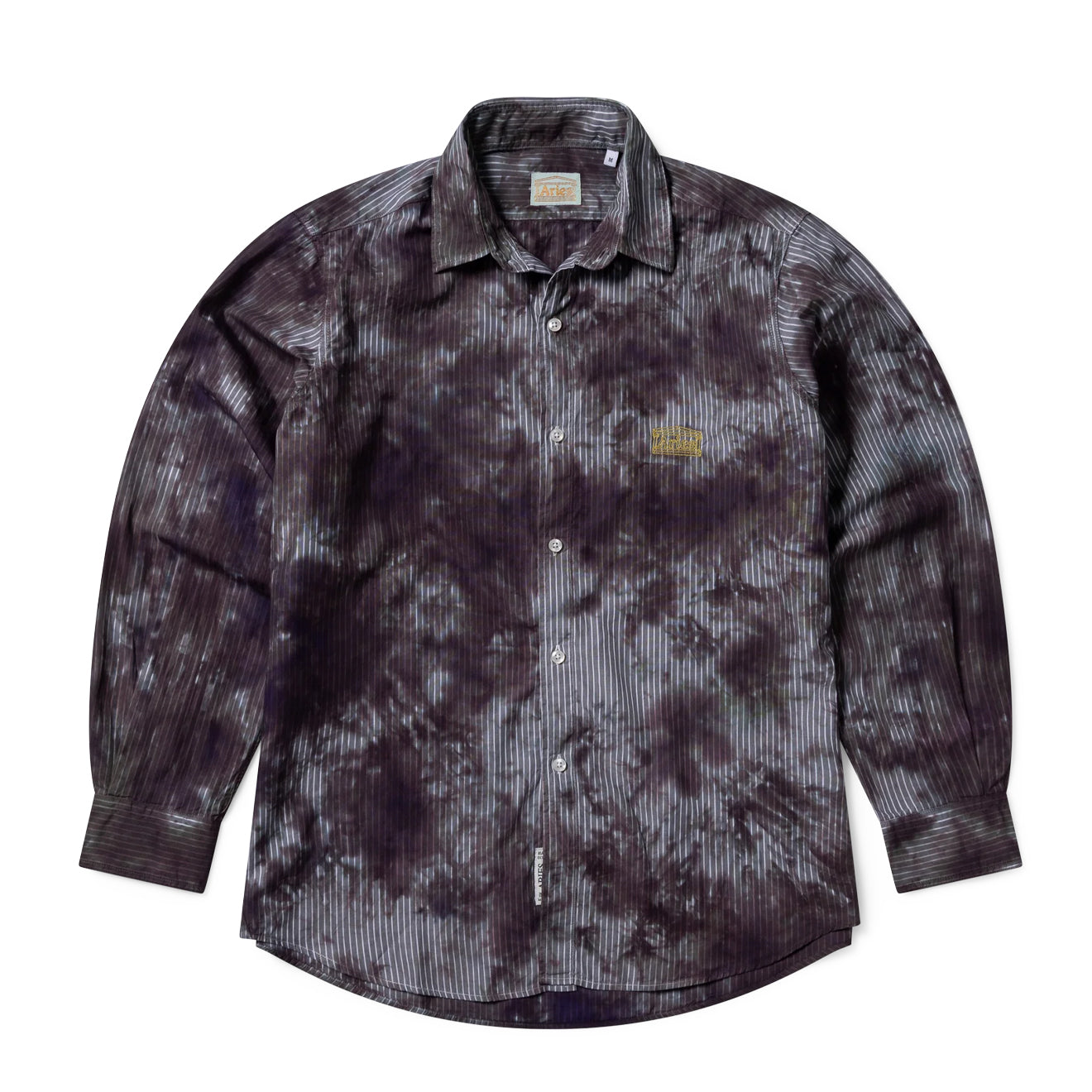 The Aries Tie Dye Stripe Poplin Shirt in Black reinvents the classic shirt with a bold, artistic edge. Made from crisp 100% cotton poplin, it features a unique tie-dye stripe pattern while retaining a structured silhouette and traditional shirt details.