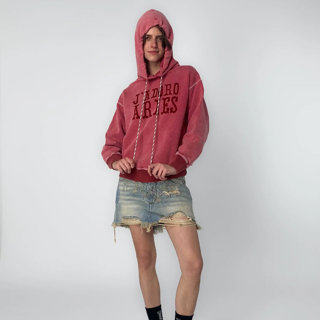 Aries Womens Aged Premium J'adoro Cowboy Hoodie Red