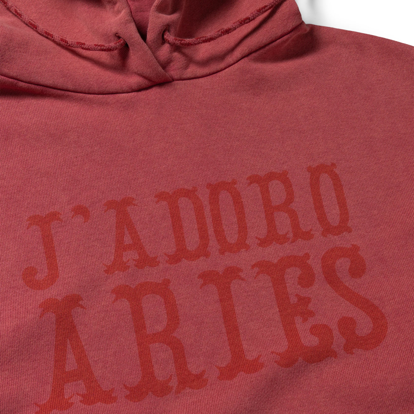 The Aries Aged Premium J'adoro Cowboy Hoodie in Red is a unisex sweatshirt made from heavy brushed-back cotton jersey fleece. It features contrast colour ribbing and a bold J'adoro Aries Cowboy graphic screen-printed on the front. Finished with a heavy wash treatment for a vintage, worn-in look, this Italian-made hoodie combines premium comfort with standout design. Perfect for those seeking a stylish and comfortable hoodie with a unique, edgy look.