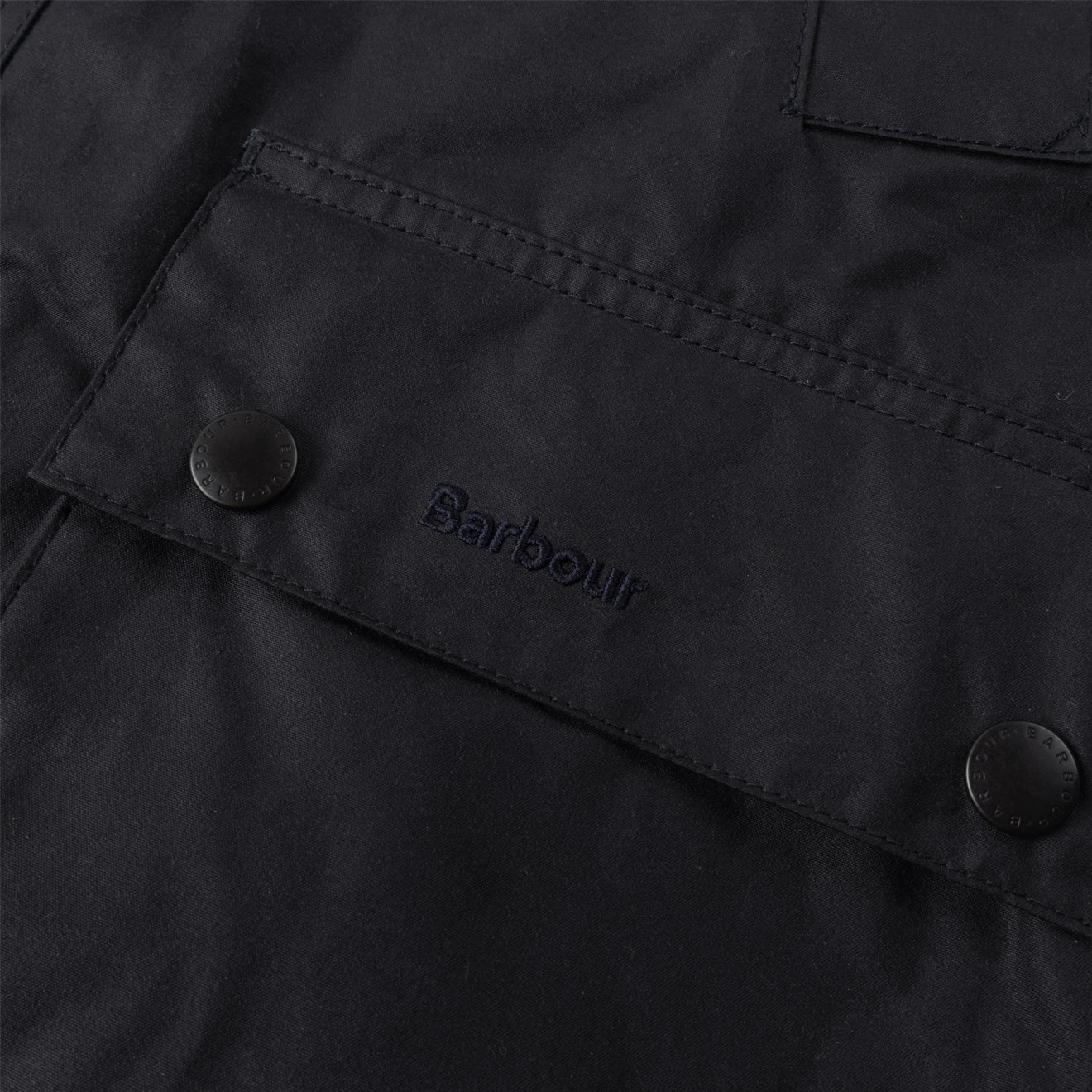 The Barbour Bedale Short Waxed Jacket in Navy is a classic, heritage-inspired jacket with a tailored silhouette. Crafted from 100% waxed cotton, it features corduroy trims, an inner tartan lining, and a front zip with a collar tab for extra protection. Adjustable cuffs and hem ensure a personalised fit, combining style and practicality for everyday wear.