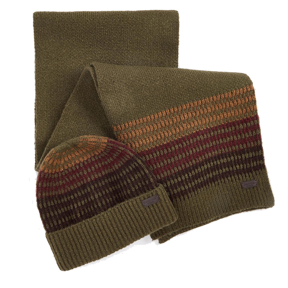 Barbour Branton Beanie & Scarf Gift Set Army Green