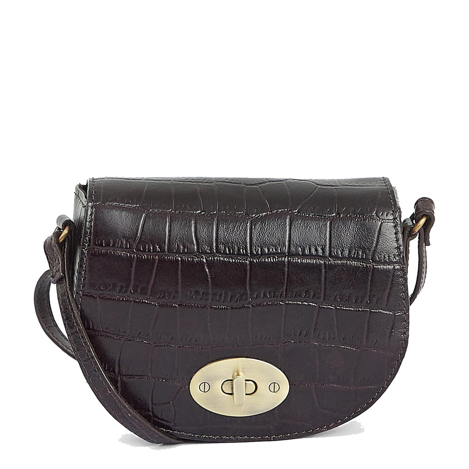 This Barbour Eilein Saddle Bag is expertly crafted with a premium leather featuring a glossy mock-croc finish, providing an elegant twist to traditional equestrian style. Aged hardware adds a vintage vibe, while an adjustable shoulder strap allows for versatile, day-to-night wear. Complete the look with the matching purse for head-to-toe coordination.