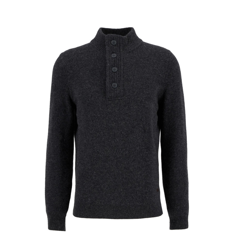 The Barbour Essential Elbow Patch Jumper in Charcoal is a timeless knit crafted from 100% merino wool. Featuring long sleeves, a button-up funnel neck, and classic leather elbow patches, this jumper adds a subtle country-inspired touch to a modern silhouette. Finished with a Barbour tan leather label at the hem for understated branding.