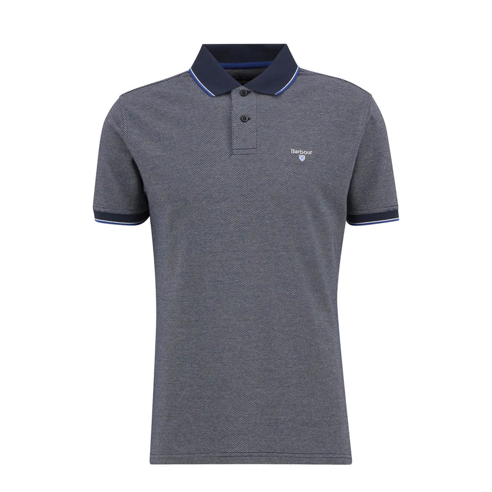 The Barbour Hanswell Tailored Polo Shirt is crafted from two-tone cotton interlock and features a contrast collar and cuffs. Cut to a tailored fit for a clean silhouette, it is finished with the Barbour logo and shield embroidery on the chest. A modern update on a classic polo.