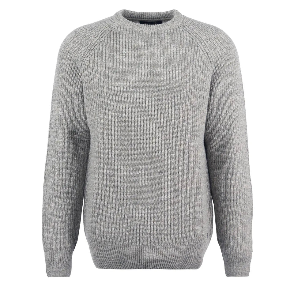 Stay cozy in the Barbour Horseford Crew Neck Jumper. Knitted in luxurious pure-lambswool yarn with a two-colour twist effect, this classic piece adds richness and texture to your wardrobe. Stay warm and stylish with this signature sweater.