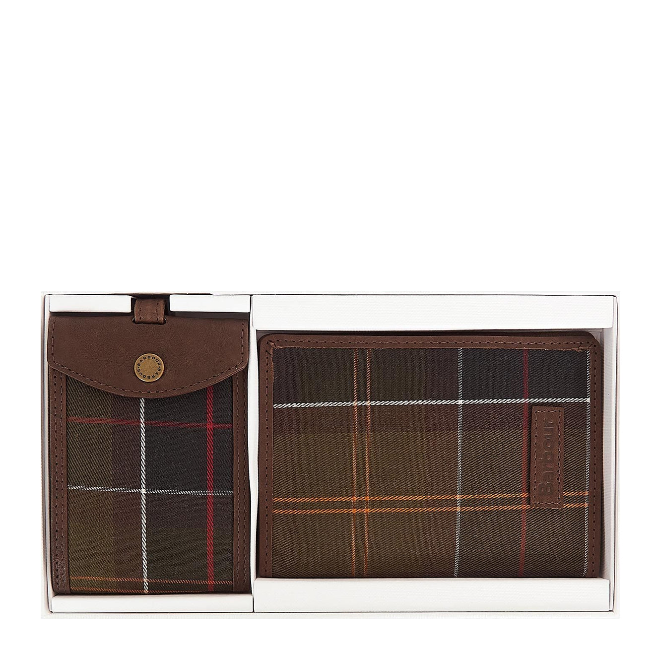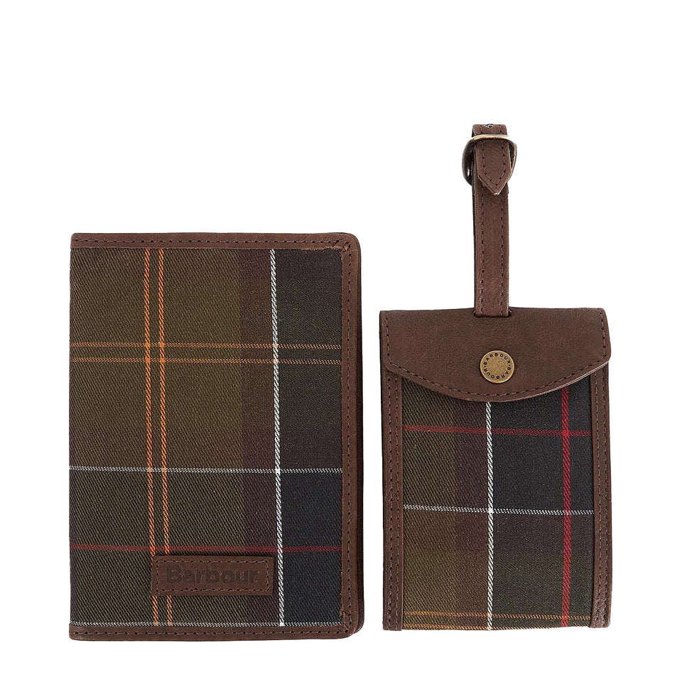 Barbour Leather & Tartan Travel Gift Set Classic Tartan / Brown
