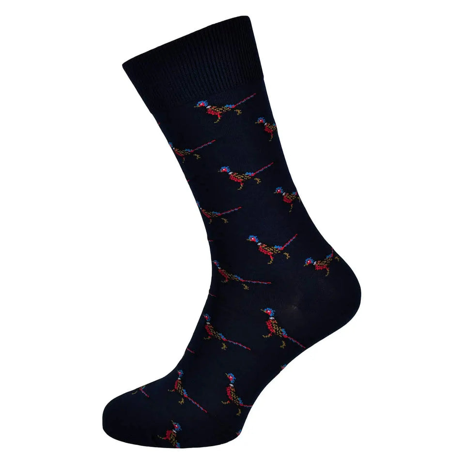 The Barbour Mavin Pheasant Sock offer a soft and comfortable cotton rich fabric with a stretch ribbed ankle cuff for a secure fit. They feature a quirky all over knitted pheasant design with a heat-sealed Barbour logo on the sole.