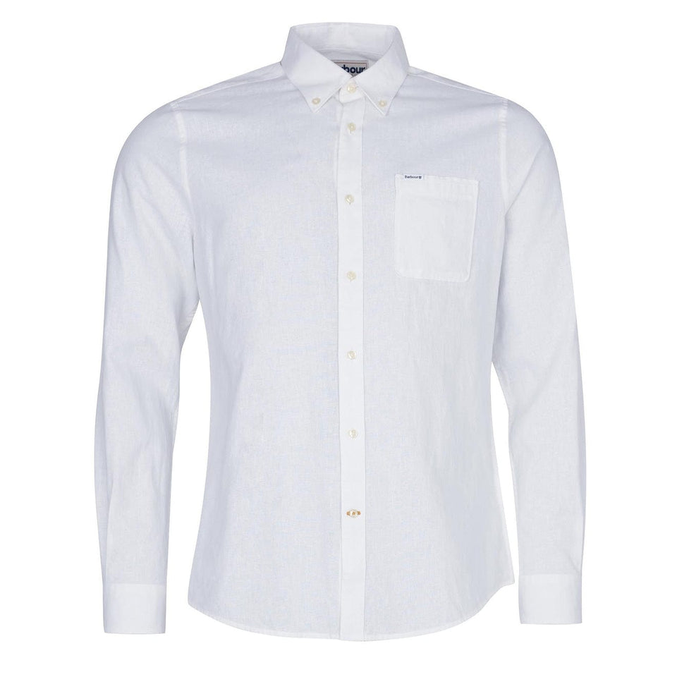 The Barbour Nelson Tailored Shirt is crafted from a cotton linen blend cut to a tailored fit. Finished with a chest pocket and minimal branding.