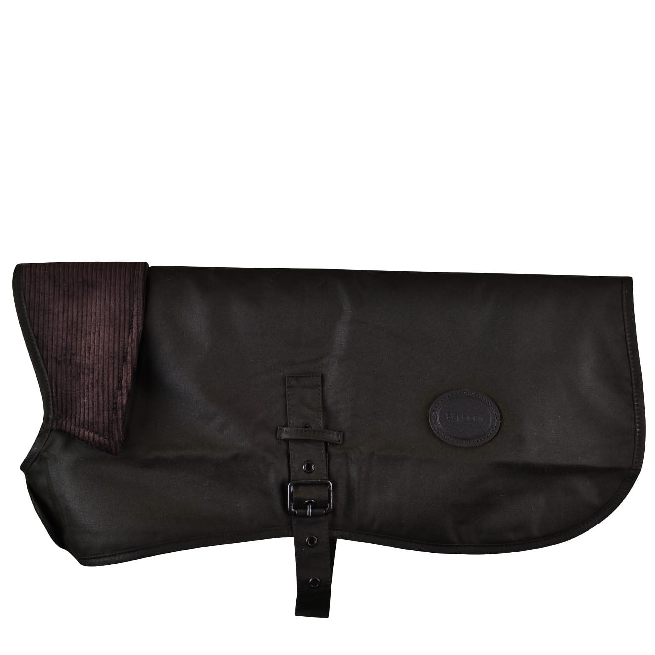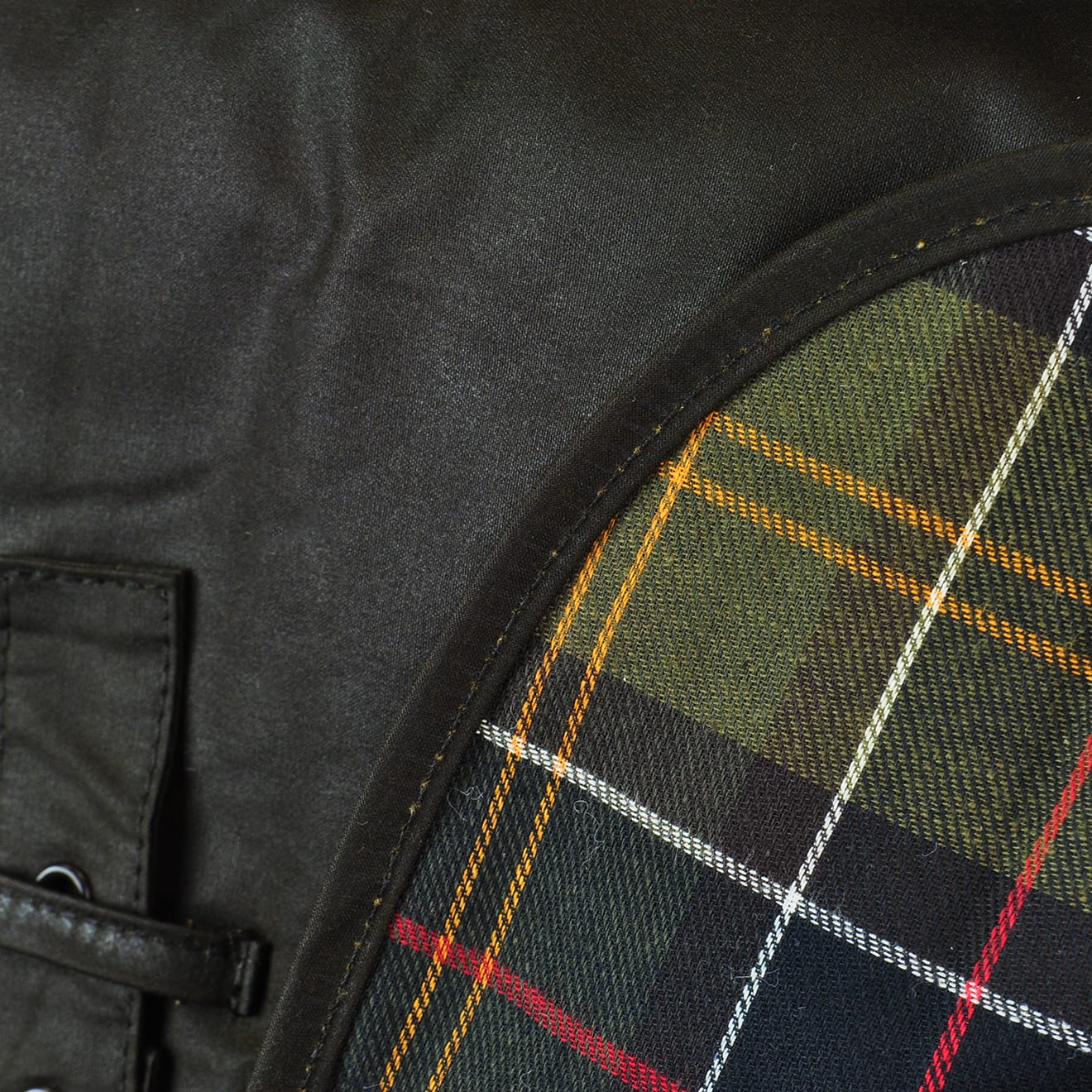 Keep your dog warm this winter with Barbour's Shiny Wax Dog Coat in Olive Green. This coat features a full waxed outer and a Tartan polyamide lining for extra comfort. The cord-detailed collar adds a touch of style, and the Velcro strap fastening under the belly ensures a secure fit.