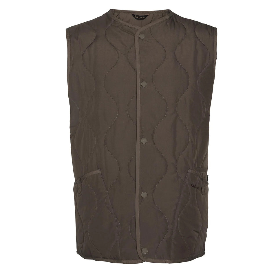 The Barbour Utility Liddesdale Gilet offers the perfect lightweight quilted design for styling alone on warmer days or layering under your go-to jacket on days when you require added warmth. Featuring Barbour's snake quilting, this press-stud fastened jacket offers an understated style that works for all seasons.