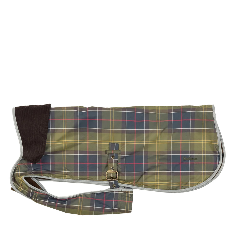 The Barbour Waterproof Dog Coat in Classic Tartan offers stylish functionality for your pet. Made from 100% polyester featuring the distinctive Barbour tartan, this coat includes a fleece lining for warmth, a cord-trimmed collar for comfort, and reflective binding for visibility. Fully adjustable, it comes complete with a branded leather badge on the exterior, ensuring both safety and style for your dog.