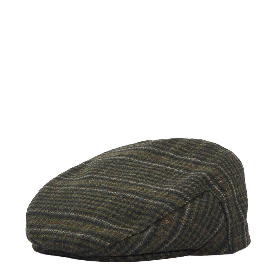 The Barbour Wilkin Flat Cap in Olive Check is a traditional flat cap with a stud fastening peak and cotton lined crown.