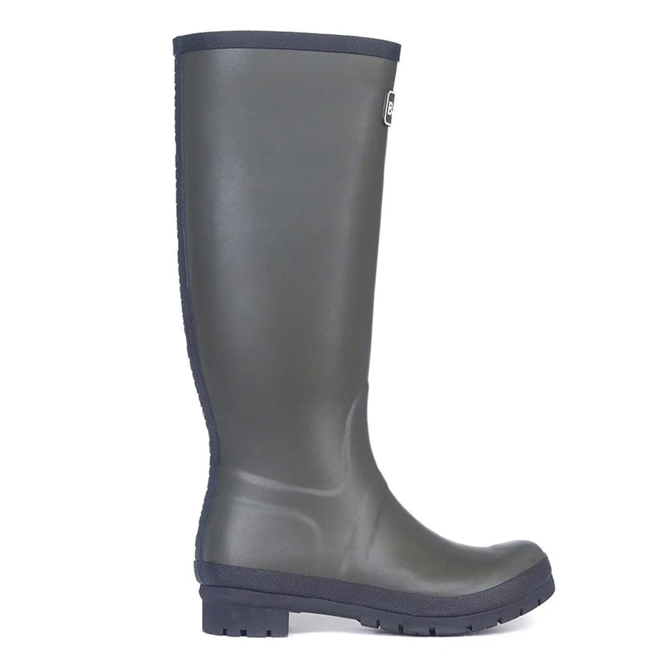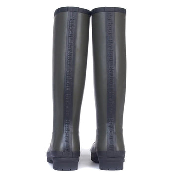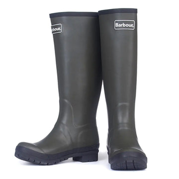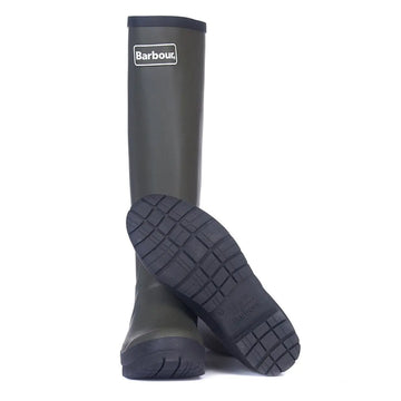 The Barbour Abbey Wellington is a contemporary update on our classic wellies, the Abbey boasts sturdy rubber construction and a chunky sole to keep feet warm and dry in the worst weather, and is finished with a repeating logo to the backstrap.