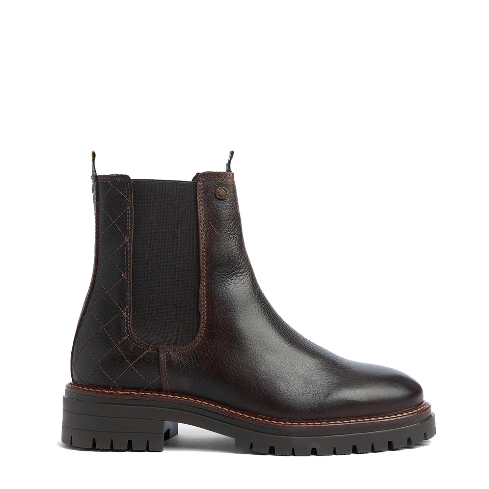 The ‘Evie’ boots are part of the New Season collection from Barbour. This Chelsea boots inspired design is crafted from a premium part leather upper, textile lining and rubber sole. An easy to wear pull on style featuring elasticated inserts and tartan pull tabs to the top-line. Diamond quilt stitch adds detail. Signature Barbour branding is seen throughout.