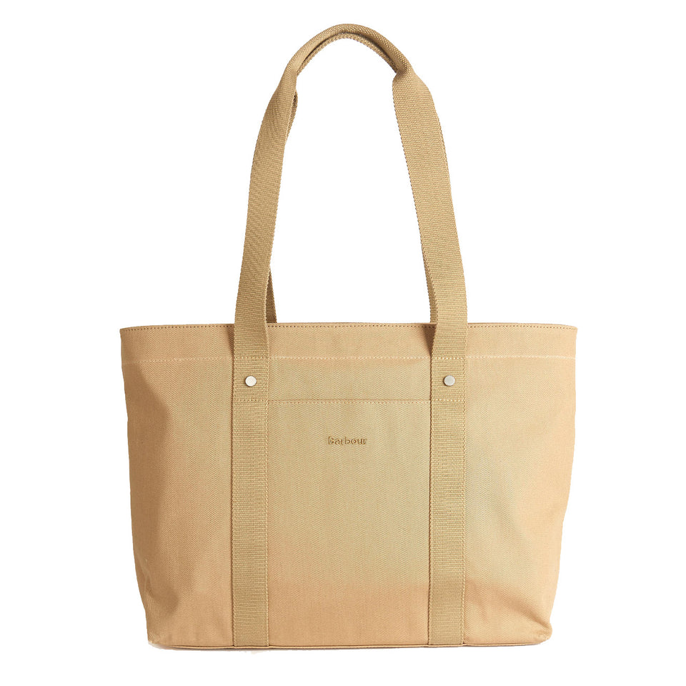 Barbour Womens Olivia Tote Bag Better Cotton sourced cotton tote bag with slip pocket to the outer front, zipped closure and inner zip security pocket. Featuring Barbour tartan trim on the interior and Barbour branded zip pullers.