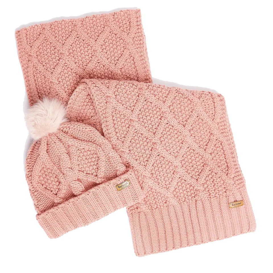 Barbour Womens Ridley Beanie + Scarf Gift Set Dusty Rose