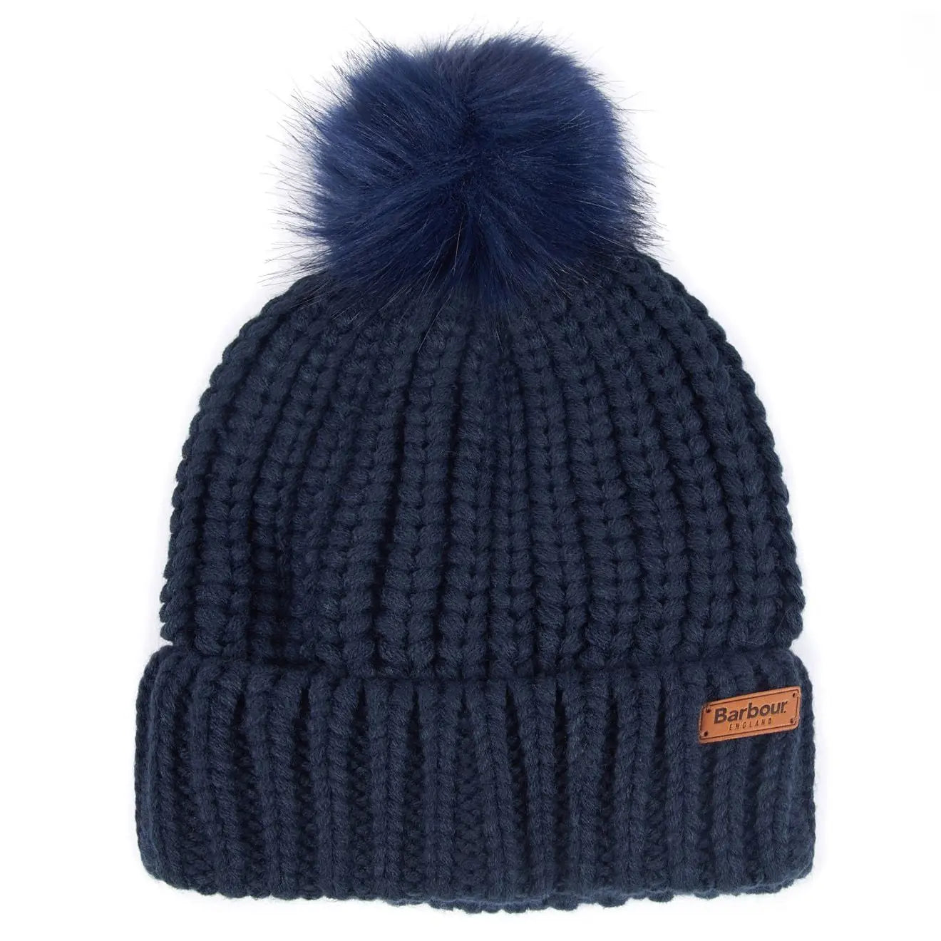 The Barbour Womens Saltburn Beanie features a faux fur fashion pom pom to the top and is crafted in a knitted design with Barbour branding to the turn down, keeping you warm and stylish.