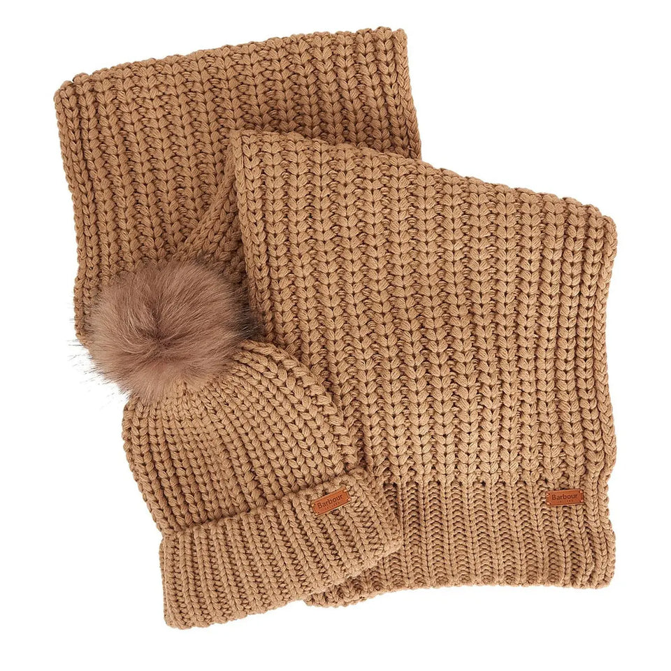 Barbour Womens Saltburn Beanie & Scarf Gift Set Mink