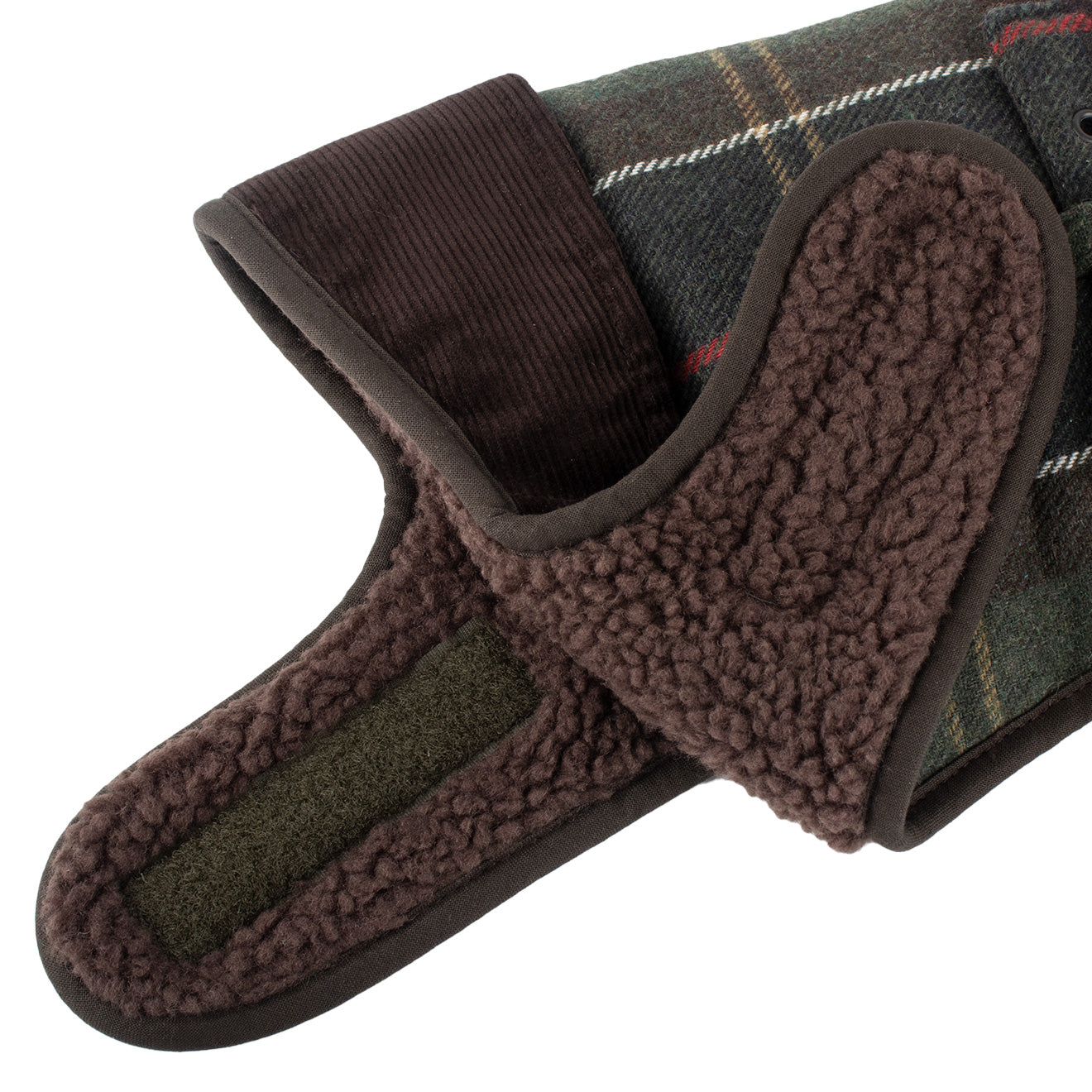 The Barbour Wool Dog Coat in Classic Tartan ensures your dog stays stylish and warm. Crafted from soft wool with a fleece lining, it provides extra warmth during winter. The coat features a cord collar and a convenient Velcro fastening for easy wear. This traditional Barbour style coat combines fashion with functionality, making it perfect for your canine companion.