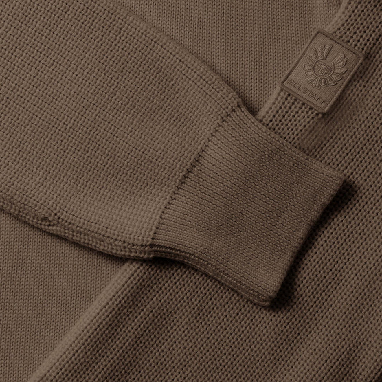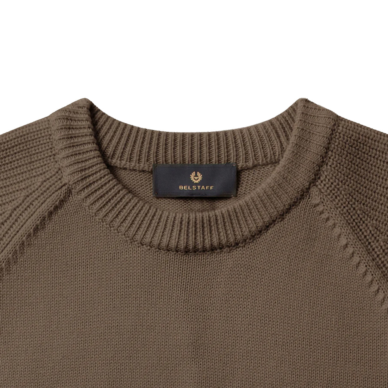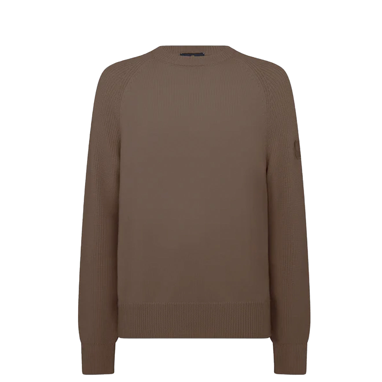 The Belstaff Aspect Crewneck Jumper in Major Brown is a men's sweater crafted from extra-fine merino wool. Its soft, warm fibres make it an ideal first layer against the cold, combining comfort with classic style.