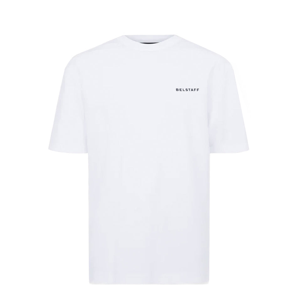 The Belstaff Border T-Shirt in White is a wardrobe essential made from 100% cotton jersey. Featuring subtle Belstaff branding on the chest and back, this versatile tee works perfectly for layering or wearing on its own.