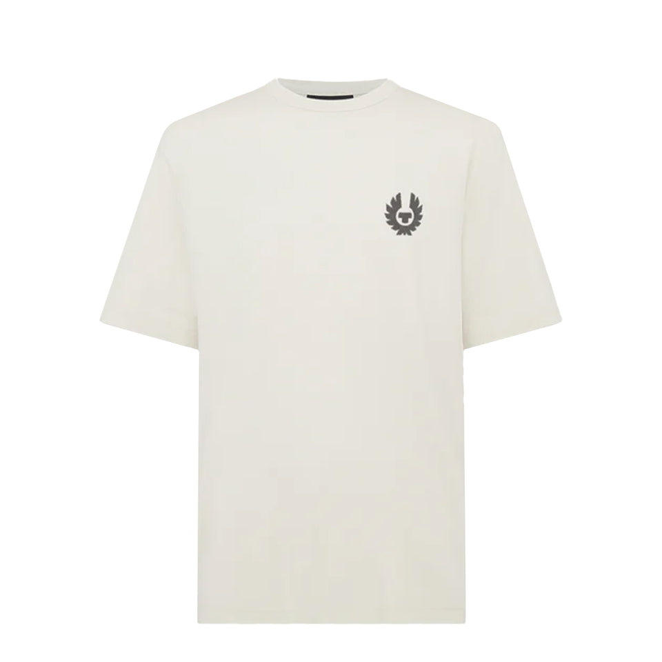 The Belstaff Shadow T-Shirt in Silver Birch is made from soft organic cotton jersey and designed for everyday comfort. It features a ribbed collar, a plastisol Phoenix logo print on the chest, and an animated Belstaff back print for a modern branded finish.