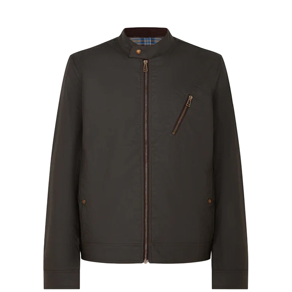 The Belstaff Sideline Jacket in Faded Olive is a modern take on the brand’s iconic Café Racer silhouette, crafted from 6 oz. British Millerain waxed cotton for dependable water and wind resistance. Designed with archive inspiration, it blends heritage style with functional protection, making it ideal for transitional weather and everyday wear.