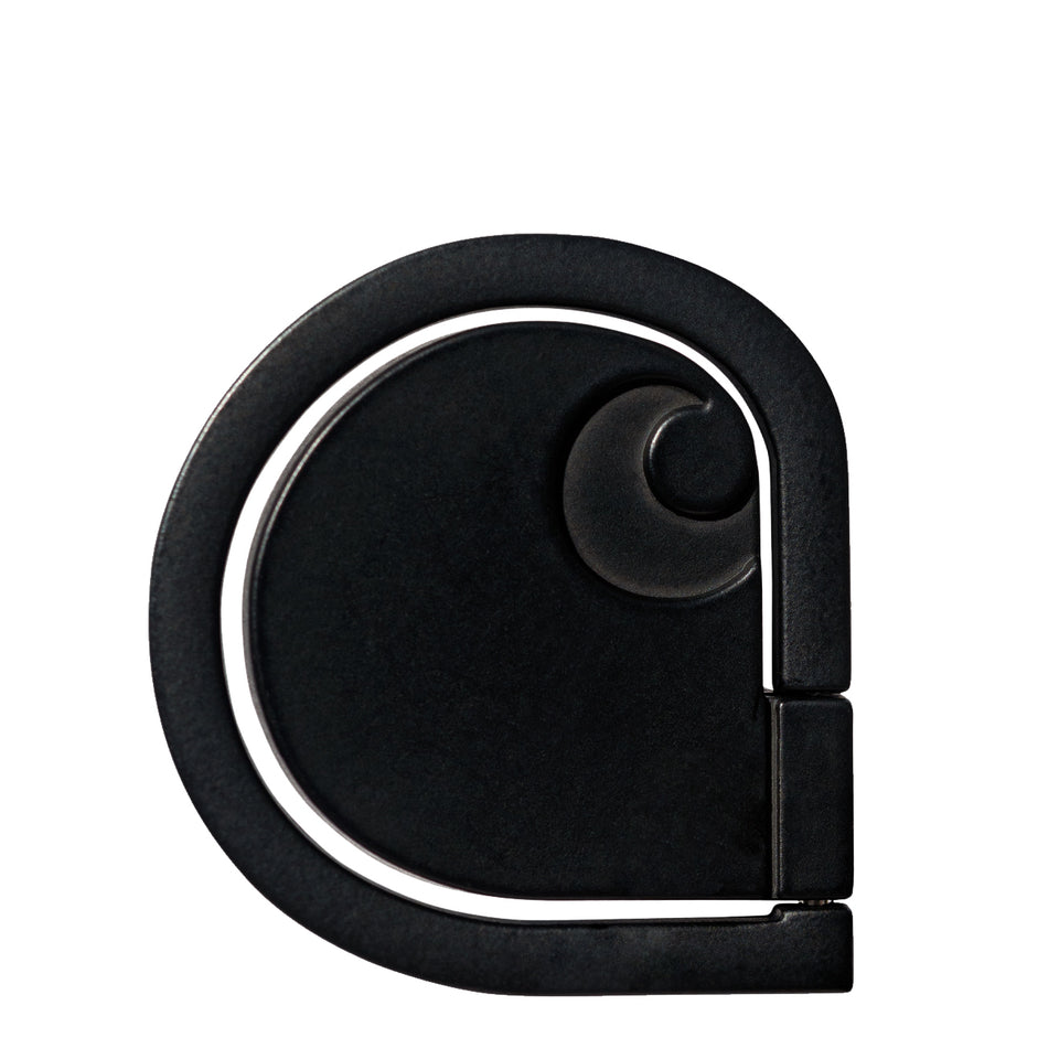 Carhartt WIP C Logo Phone Ring in Black. The 'C' Logo Phone Ring is made from zinc alloy and rotates up to 180°. The item features a strong adhesive backing.