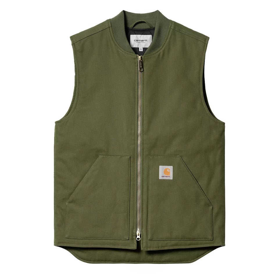 A signature Carhartt WIP style, the classic Vest is constructed in their hardwearing Dearborn Canvas. Cut in a regular fit, the garment is also diamond-quilted and lined with nylon taffeta. A kangaroo pocket, rib-knit collar, and front zipper complete the design.