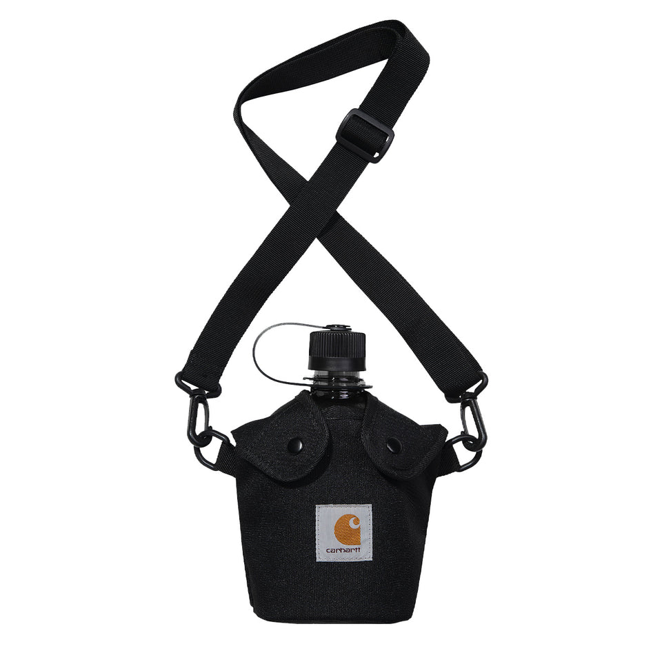 The Field Bottle in 'Black' by Carhartt WIP is a screw top bottle that has been made up from 'BPA-free Eastman Tritan Copolyester', that sits in a recycled polyester and water-repellent canvas bag - the perfect item for your outdoor pursuits. This bottle easily fits in the canvas bag and is secured with two snap buttons. It also has the signature Carhartt WIP square label on the front.