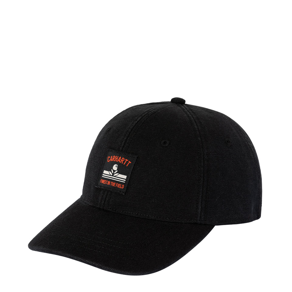 The Carhartt WIP Field Cap Black, is made from robust Dearborn Canvas and is lined at the front panel. It is detailed with a graphic label on the front and has an adjustable strap to ensure a perfect fit.