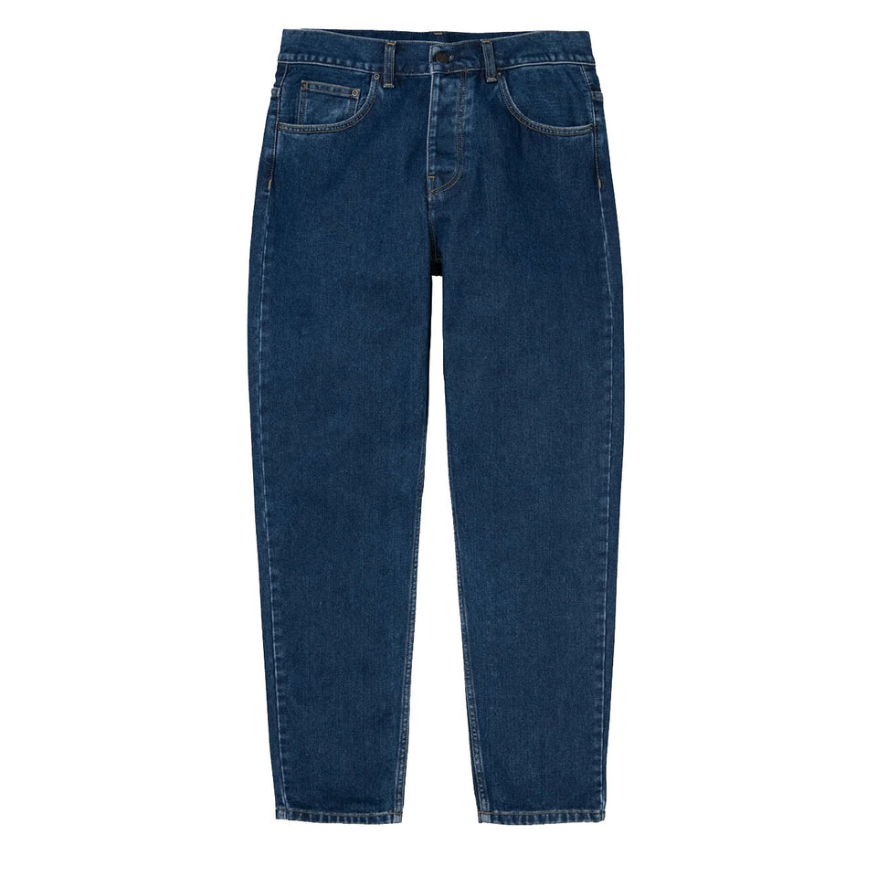 The Carhartt WIP Newel Pant in Blue Stone Washed is made from 13.5 oz Maitland denim, offering both durability and comfort. Designed with a relaxed tapered fit and a regular waist, this pant comes in several variations, including the Blue Stone Washed version with a faded, lightly worn-in look. The design is completed with a back yoke and a woven Square Label on the rear pocket for a signature touch.