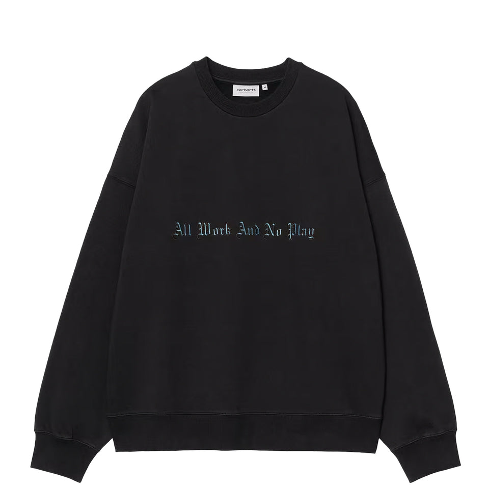 The Carhartt WIP No Play Sweat in Black combines relaxed streetwear style with a boxy, loose fit and a softly brushed, fleece-like interior for comfort. Featuring an embroidered graphic on the chest and a contrasting poplin graphic patch on the back, it adds a subtle, bold touch to casual outfits.