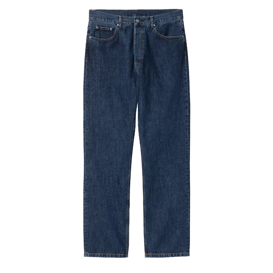 The Carhartt WIP Nolan Pant in Blue Stone Washed is crafted from heavyweight cotton denim, offering durability and style. It features a relaxed straight fit with a regular waist for a comfortable, laid-back look. A woven Square Label is placed on the back pocket, adding a subtle branded detail to the design