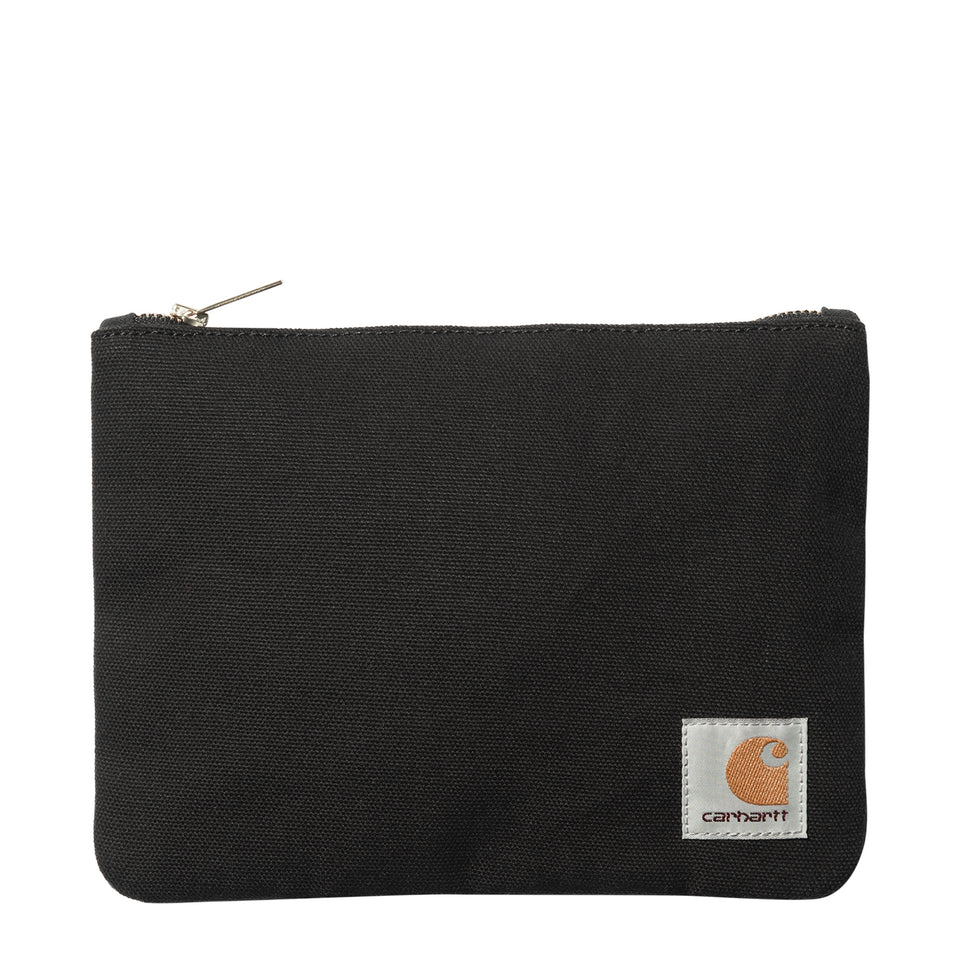 The Carhartt WIP Oregon Zip Wallet Black is crafted from the durable Dearborn Canvas cotton fabric, designed with jacquard stripes reminiscent of the brand's signature jacket linings. The interior is fully lined and contains an internal patch pocket, finished with a woven Square Label.