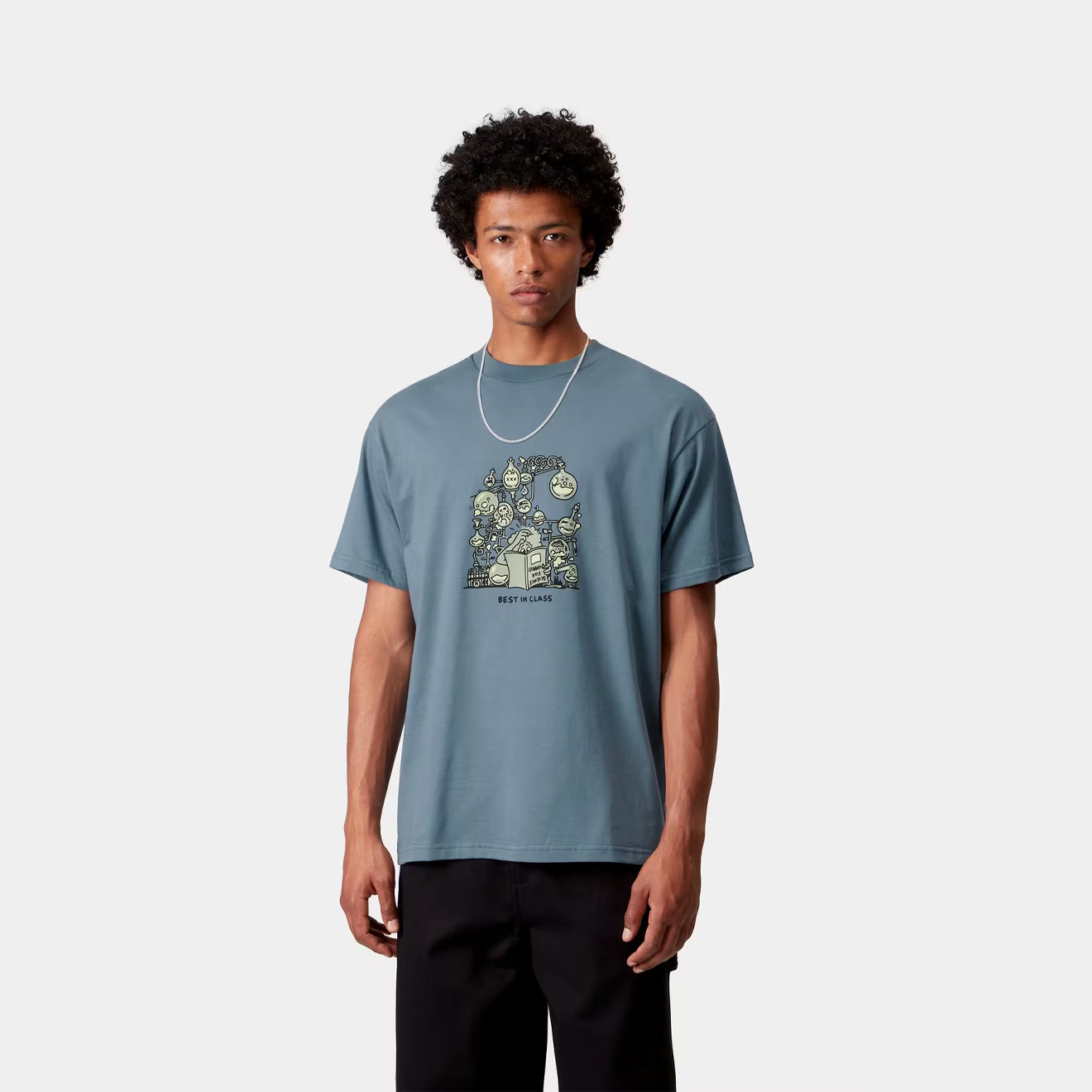The Carhartt WIP S/S Beaker T-Shirt Angelite is made from midweight organic cotton jersey with a loose fit for everyday comfort. A graphic print on the front adds a casual finishing touch.