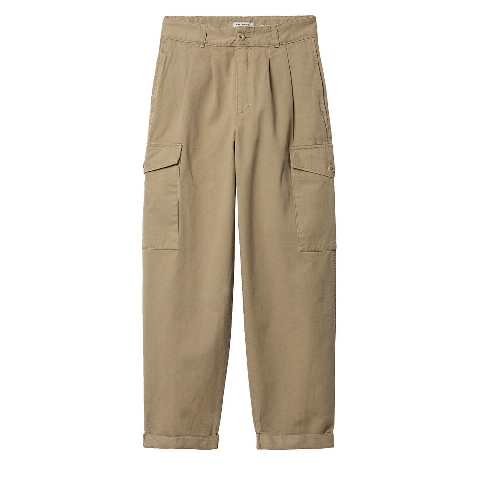 The Women's Collins Pant is made of durable Moraga twill, which is a midweight organic cotton fabric that has been garment-dyed, resulting in subtle color variations throughout and a softer feel. The style features large patch pockets on each leg, and two back pockets, nodding to classic military-inspired BDU pants. Cut in a relaxed fit with a high waist, the Women's Collins Pant is detailed with double front pleats and pleated cuffs at the back, further enhancing the style's voluminous lines.