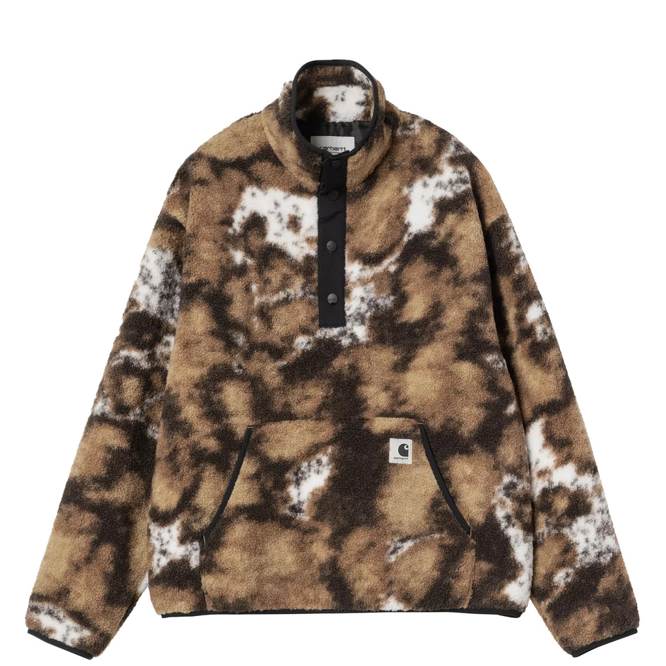 The Carhartt WIP Womens Elliot High Neck Liner in Wild Dog Jacquard and Black is made from heavyweight polyester pile with a smooth polyester twill lining. Designed with nylon taffeta trims, a snap-button half placket, and high collar, it is finished with a woven Square Label on the chest.