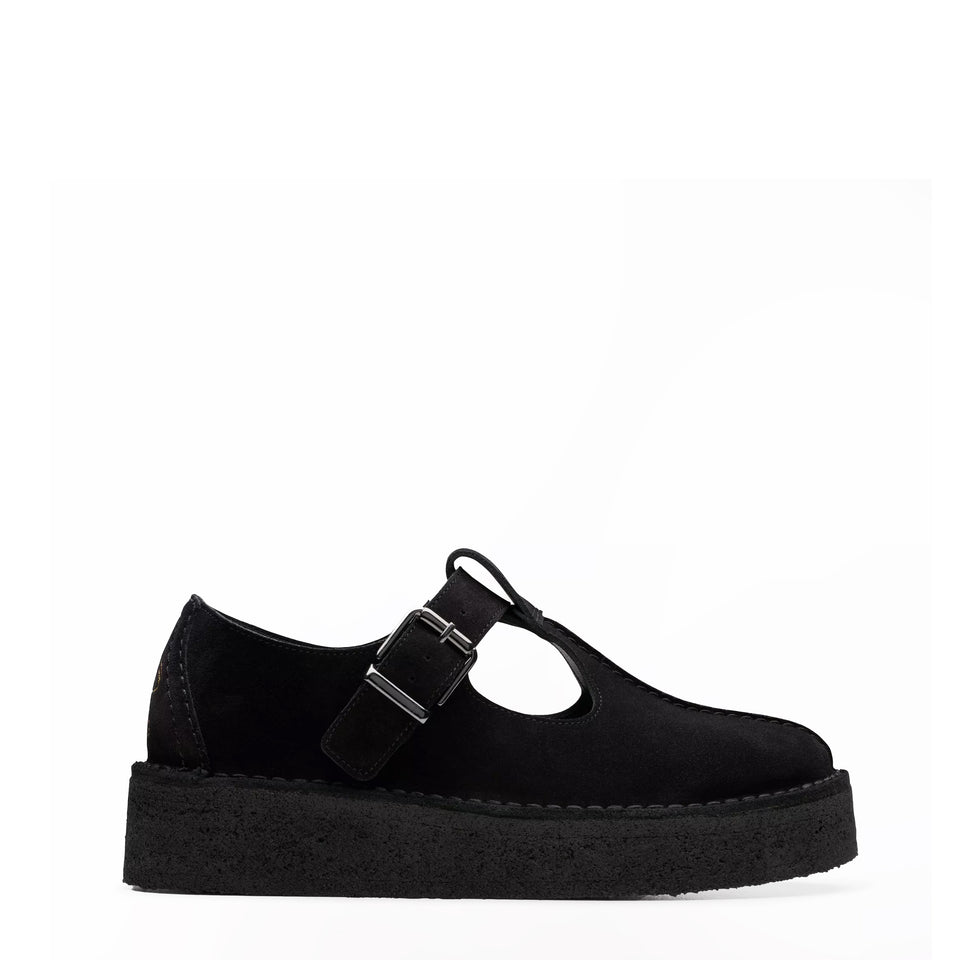 Clarks Originals Womens The Trek Wedge T-Bar Black Suede