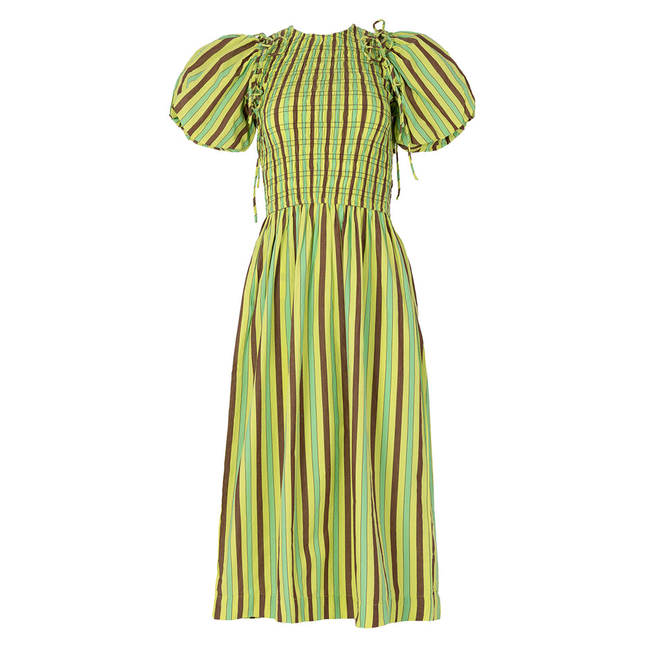 Damson Madder Becca Midi Dress Tropical Business Stripe
